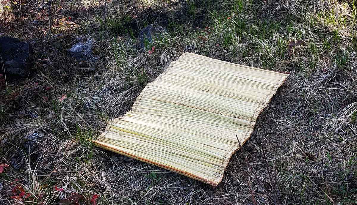 Woven from the wetland plant tule or bulrush, the optimal time to pull tule is in the late summer when they are most mature and before they freeze. The structure of the tule repels water, is buoyant and lightweight to roll up for transport. Its buoyancy kept many a sturgeon nosed canoe upright in the river. Tule mats were historically used for a multitude of essential utilitarian needs including shelters, sleeping mats, burial mats and other ceremonial uses.